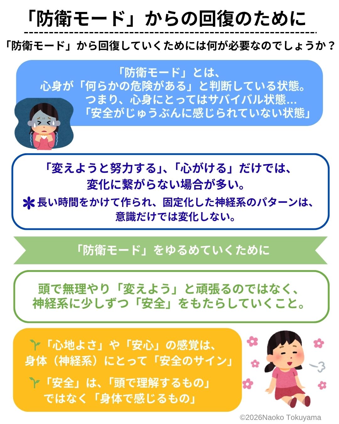 神経系が「危険だ」と判断している限り、「防衛モード」は変わりません。