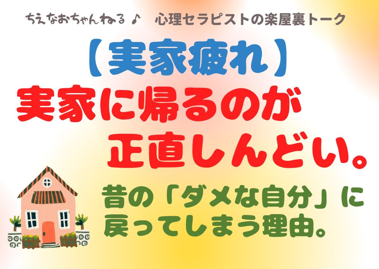 【実家疲れ】実家に帰るのが正直しんどい…「元のダメな自分に戻ってしまう」という人へ。【心理セラピストの楽屋裏】